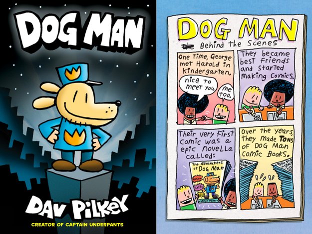 Hey, guys! Today I am going to do a book review on the graphic novel, Dog Man. It is my favorite book of all time. It is about this cop and a dog. The cop is very dumb, and the dog is very smart. One day there is a bomb. The cop's head is dying and the dog’s body is dying, so the nurse sews the dog's head onto the cop’s body. That day a hero was made. If you want to read this book, it is by Dave Pilkey. I recommend it. Bye, Guys! -Amy Grace